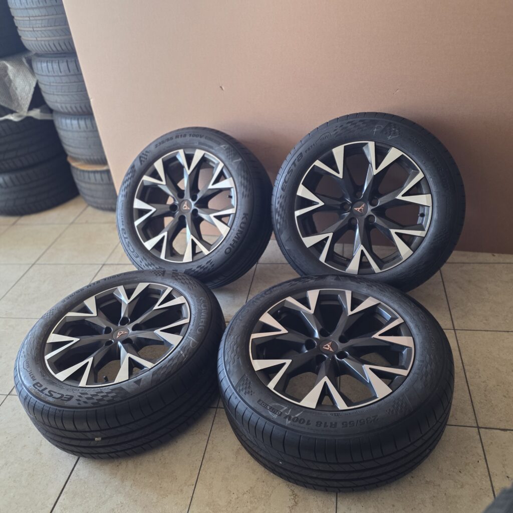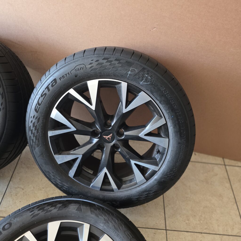 18 inch originele velgen met zomerbanden CUPRA Terramar. Onderdeelnummer: 578601025A Naaf: 57.1 Steek: 5x112 Afmetingen: 8 J x 18 inch ET-waarde: 38