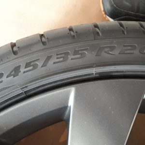 :Originele! 20'' Velgen met nieuwe zomerbanden merk Pirelli / maat 245-35 R20 / 1 van de velgen heeft een krasje zie op foto!