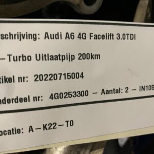 Audi A6 4G facelift 3.0tdi bi-turbo uitlaatpijp met flexibel deel 200km z.g.a.n onderdeelnr: 4G0253300 - IN1057/15.