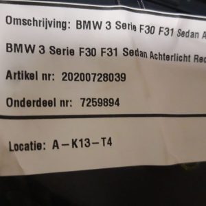 BMW 3 serie F30 F31 sedan achterlicht rechts buiten nette staat onderdeelnr: 7259894