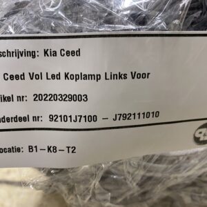 :Kia Ceed vol led koplamp links voor gebruikt zeer nette staat alle oortjes in orde onderdeelnr: 92101J7100 J792111010. Marge!