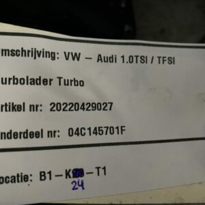 VW - Audi 1.0tsi tfsi turbolader turbo goede staat past op meerdere modellen zie onderdeelnr: 04C145701F